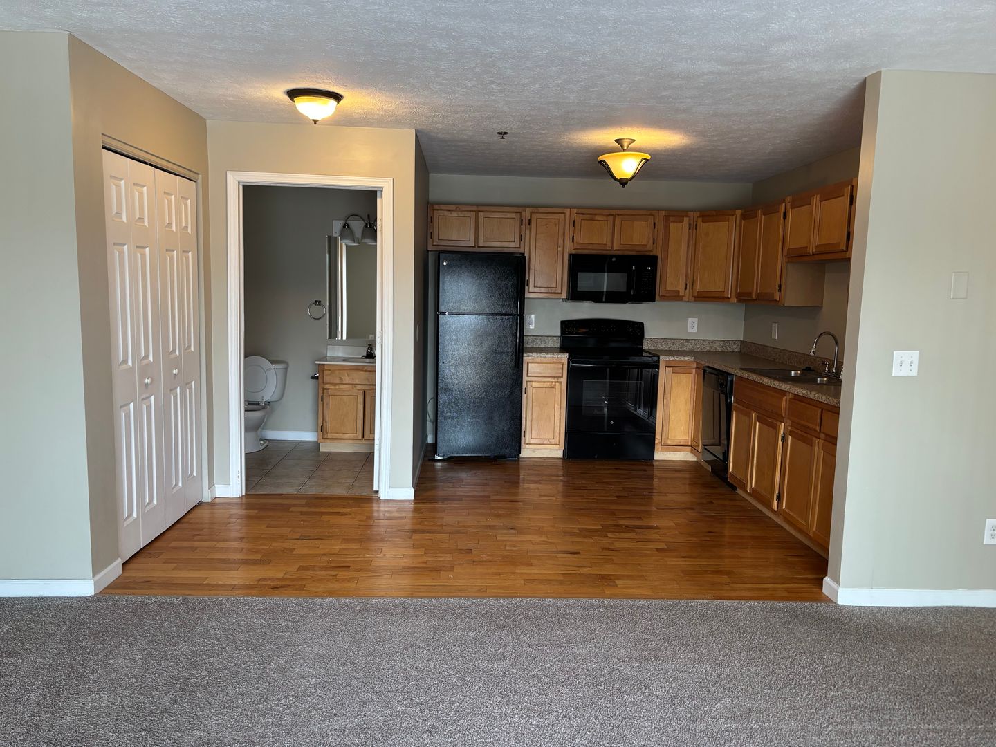 Our 2 bedroom apartments have a great open floor plan with adjoined kitchen and living area allowing for endless furniture staging options! They also have a nice size full bath and a half bath as well! Our units feature large bedrooms with full closets. The kitchen has a full size fridge, dishwasher and range with built in microwave.