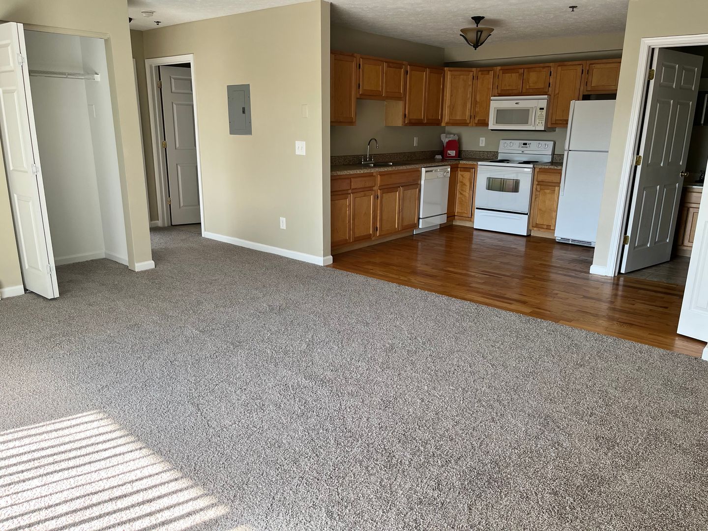 Our 2 bedroom apartments have a great open floor plan with adjoined kitchen and living area allowing for endless furniture staging options! They also have a nice size full bath and a half bath as well! Our units feature large bedrooms with full closets. The kitchen has a full size fridge, dishwasher and range with built in microwave.